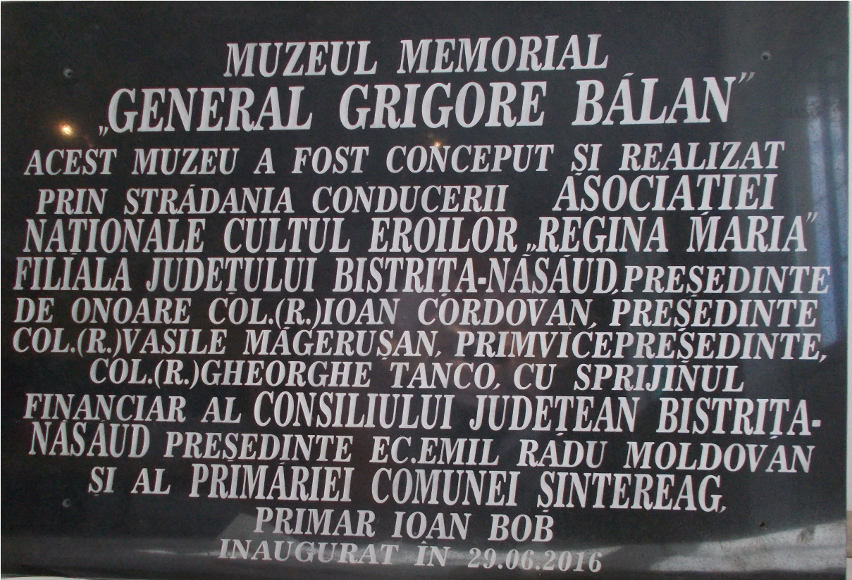 Muzeul a fost conceput și realizat de membrii Asociației Naționale Cultul Eroilor „Regina Maria”, Filiala Județeană Bistrița-Năsăud „Colonel Liviu Rusu”: col (rtg) Ioan Cordovan, col (rtg) Vasile Măgerușan și col. (rz) Gheorghe Tanco, cu sprijinul financiar al Primăriei comunei Șintereag, primar ec. Ioan Bob. Un sprijin special am primit și din partea cap. Adrian Prodan din Brigada 81 Mecanizată „General Grigore Bălan”.