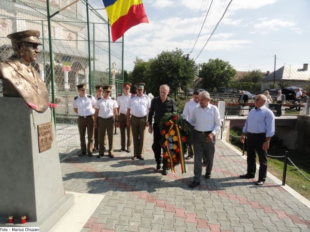 Bustul din bronz a fost realizat în anul 2016 de sculptorul Mircea Mocanu, finanțarea fiind asigurată de Centrul Județean pentru Cultură, manager dl. Gavril Țărmure.